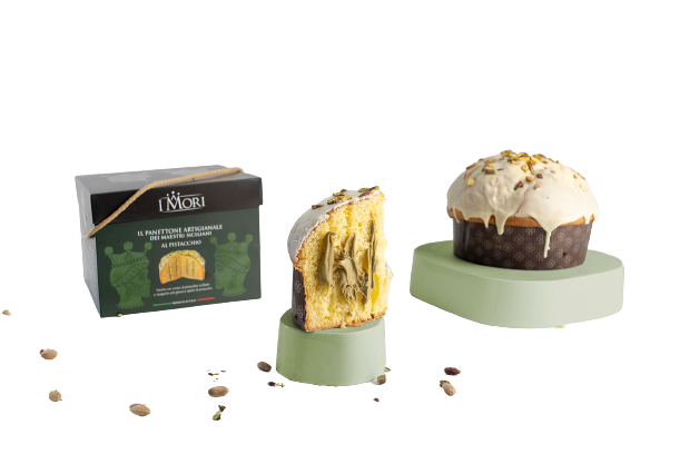 I mori natale , la tradizione, il panettone artigianale fatto dai maestri siciliani , cioccolato e crema al pistacchio, 900gr.