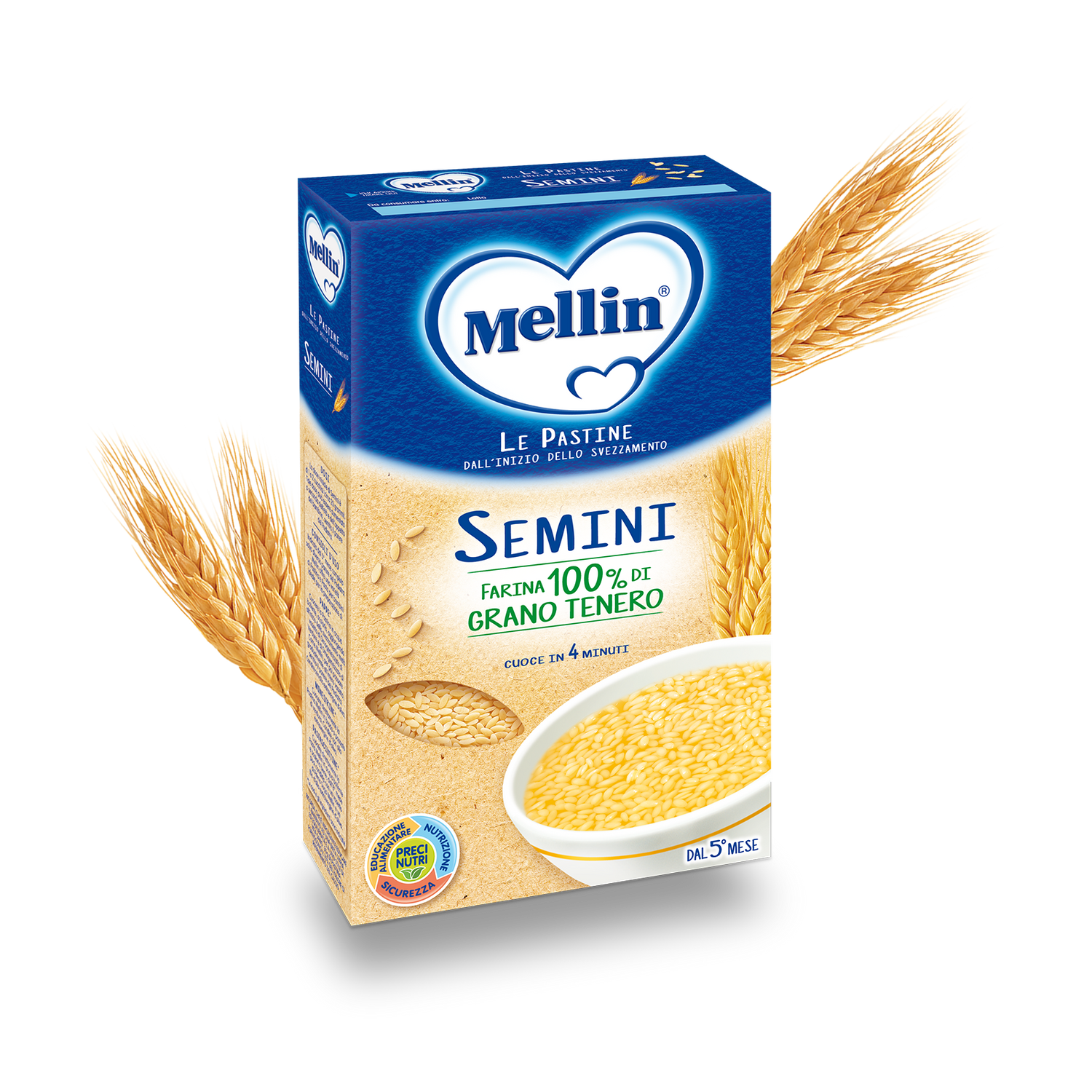 Mellin pastina per bambini dal quinto mese, semini 100% di grano tenero ,350gr.