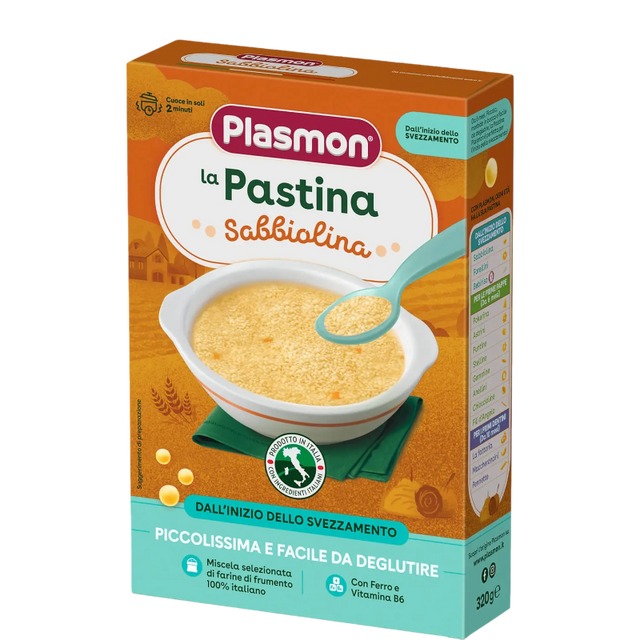 Pastina Sabbiolina Plasmon is a product indicated from the beginning of weaning, unless otherwise advised by the pediatrician.