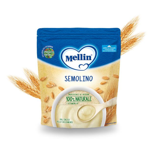 Mellin crema per bambini al quarto mese, ,crema semolino, crema ai cereali con glutine, 250gr.