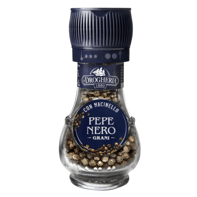 Drogheria alimentari, con macinello, il pepe nero in grani, barattolo di vetro, 35gr.