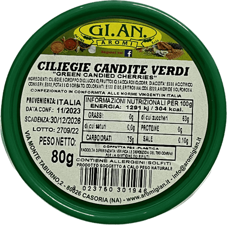 £2314Unit price /UnavailableGI. AN. AROMI CRYSTALLIZED CHERRIES GREEN 80 GR (24 in a box)