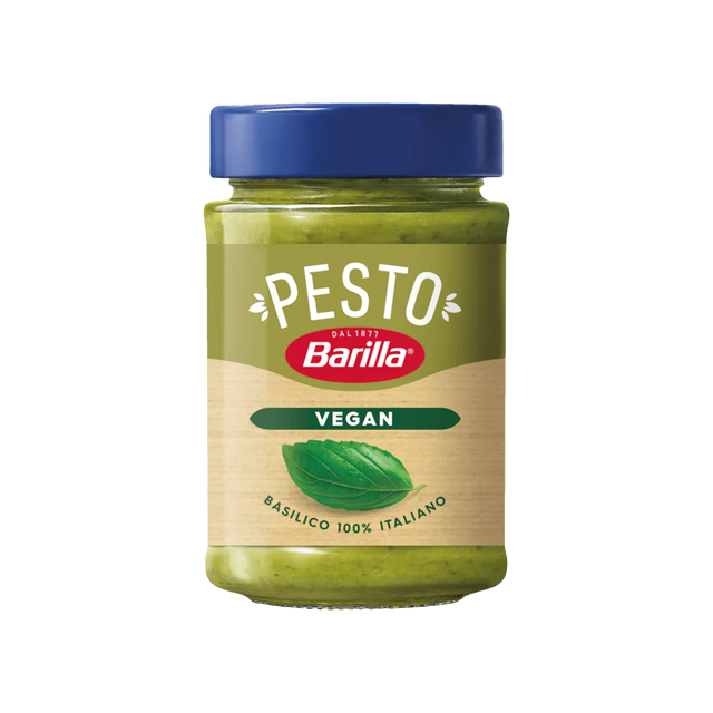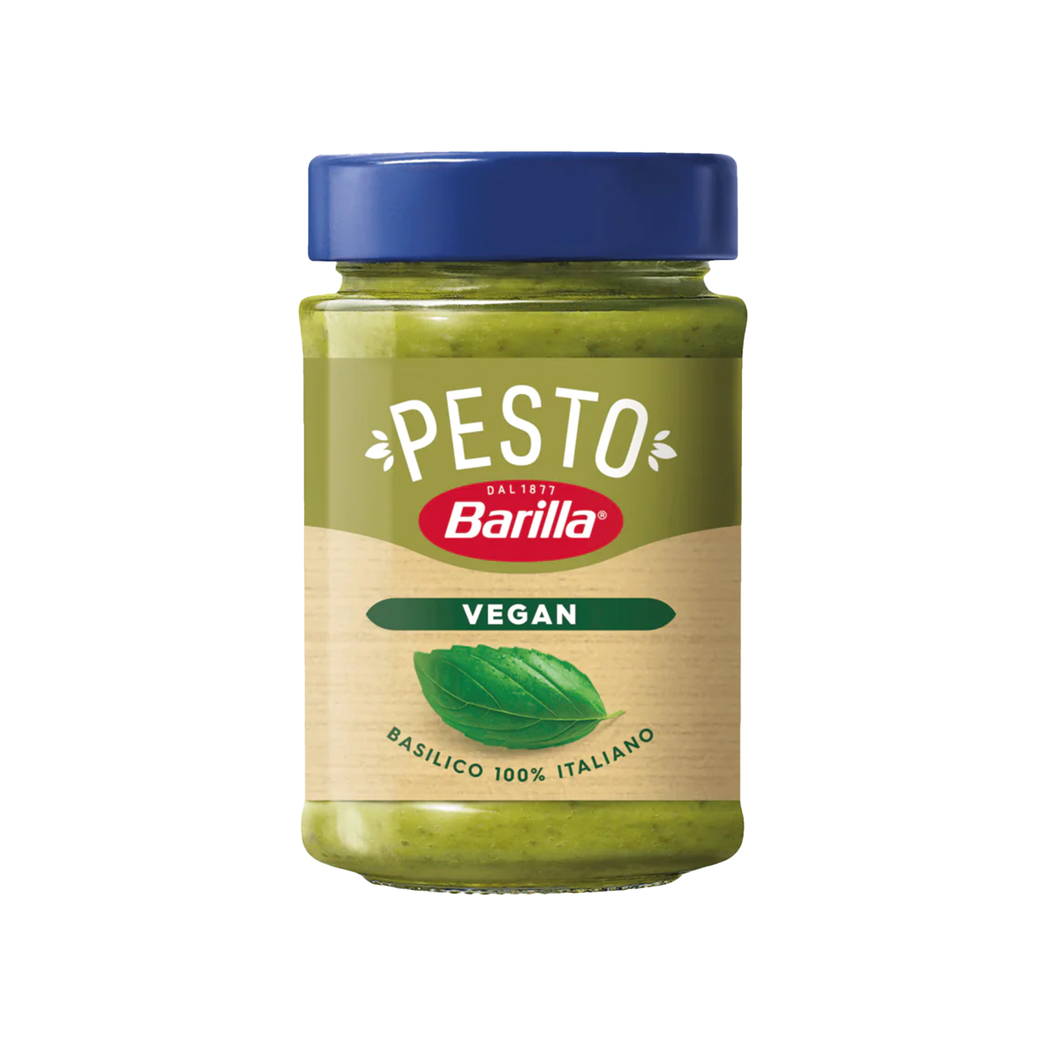 Barilla pesto pronto vegan di basilico vegetale, 100% vegetale senza formaggi, barattoli di vetro, 195gr.