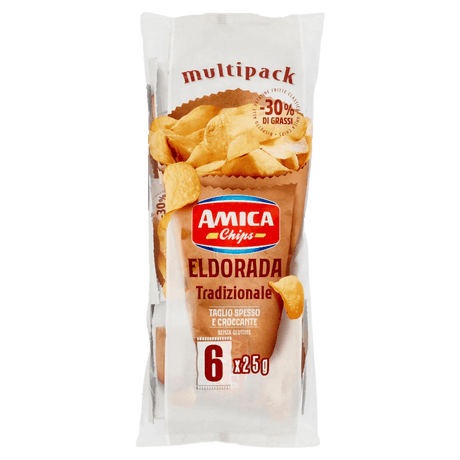 £1981Unit price /UnavailableAMICA CHIPS CRISPS ELDORADA TRADITIONAL MULTIPACK X6 150 GR (12 in a box)