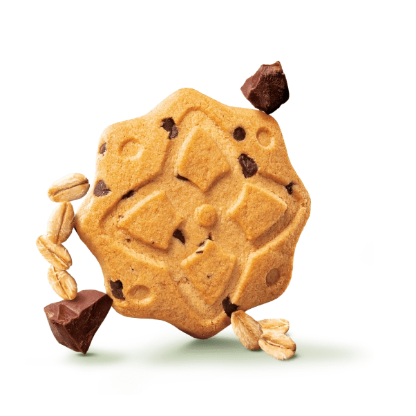 Wheat flour 46.5%*, sweeteners 19.1%*, sweeteners 19.1%* (maltitol, maltitol syrup), oat flakes 13.9%*, sunflower oil, chocolate with sweeteners 8%* (sweeteners: maltitol, cocoa paste, aroma, low-fat cocoa powder, emulsifier: soy lecithin), butter, fresh eggs, barley malt extract 1.7%*, baking agents (sodium acid carbonate, ammonium acid carbonate), aromas, salt.