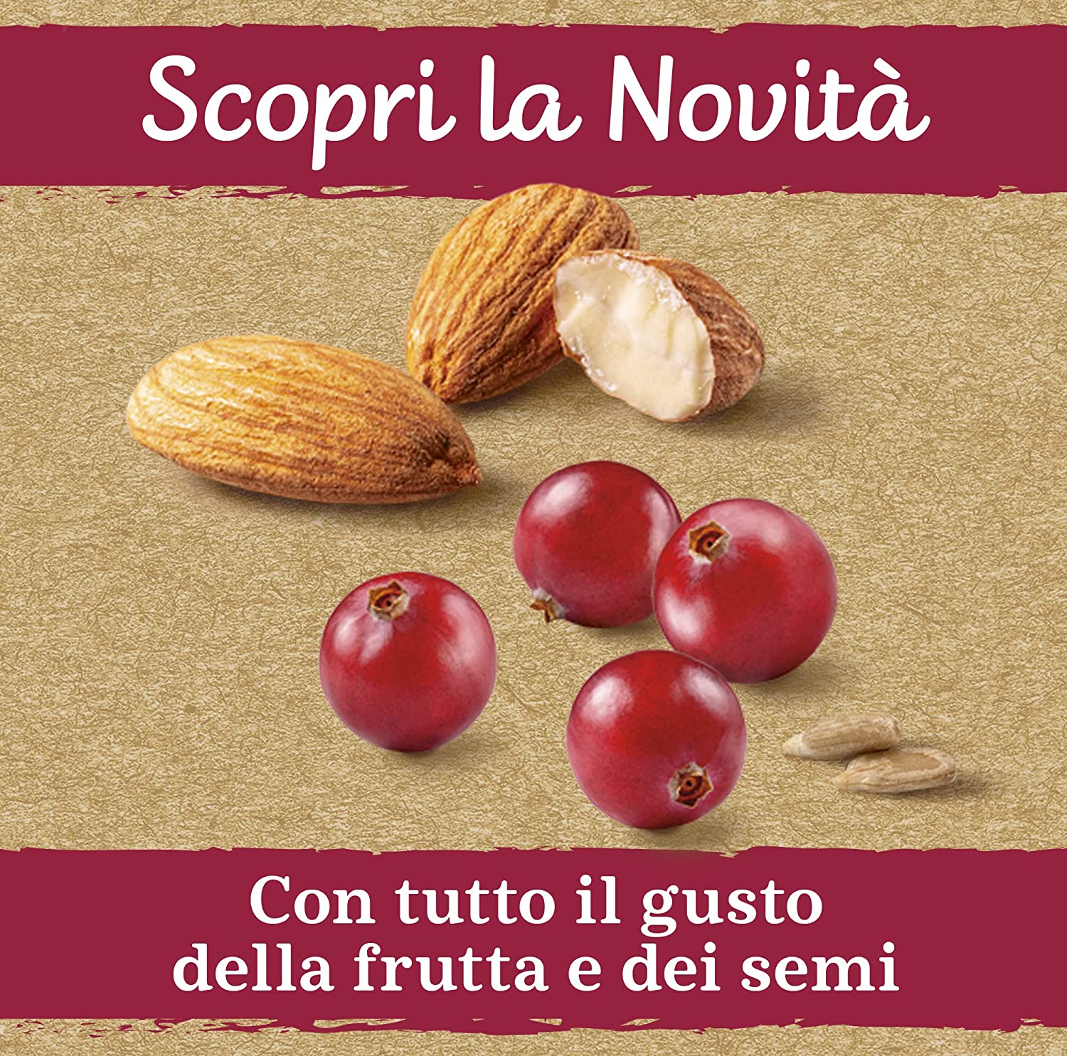 Mulino bianco colazione merenda , mini fette con farina integrale e frutta, mirtilli rossi e mandorle e semi di girasoli , ricca di fibra, 90 gr.