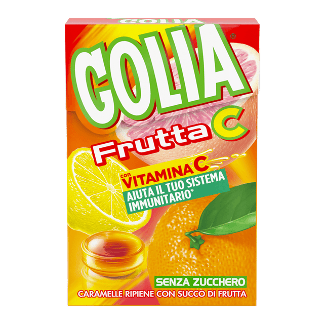 Golia , le caramelle dure alla frutta ricche di vitamina C, senza succhero aggiunto, astuccio da 49gr.