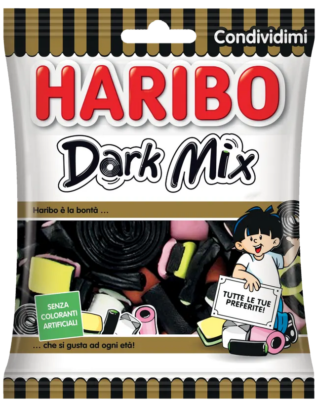 Haribo dark mix candy liquourice flavour, caramelle gommose mix gusto liquirizia, 175gr.
