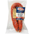 This premium quality hot sausage is the most popular traditional salame from Calabria. It is obtained from the shoulder and bacon of the pork. Medium cut, it is seasoned with hot peppers from Calabria and cured for at least 30 day. The meat then stuffed into natural casings with its characteristic horse-shoe shape.