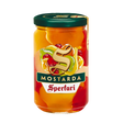 Mostarda di frutti assorti, characterized by the unmistakable and surprising sweet and spicy taste. Ideal to combine with boiled, roast, cheese and as an ingredient for various recipes.