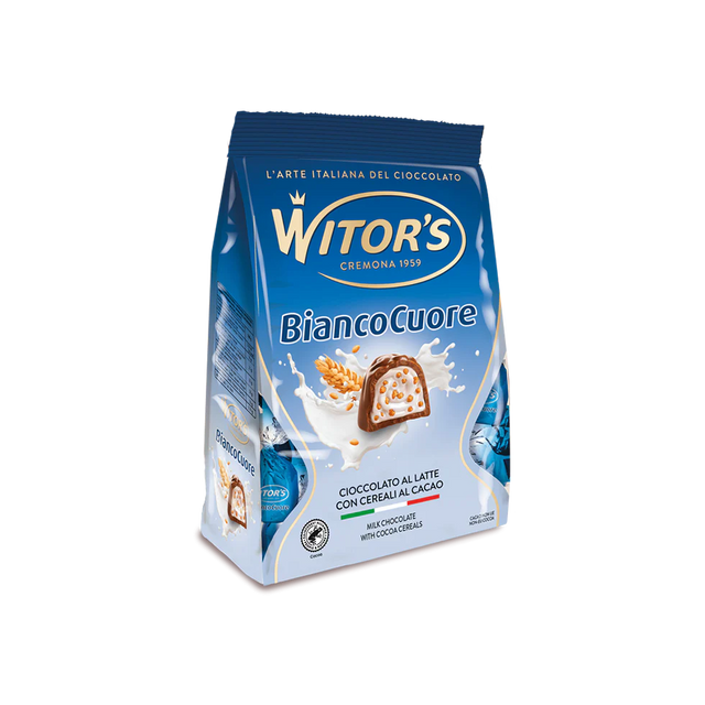 WITOR'S PRALINES BIANCOCUORE MILK CHOCOLATE CEREALS 200 GR (12 in a box)