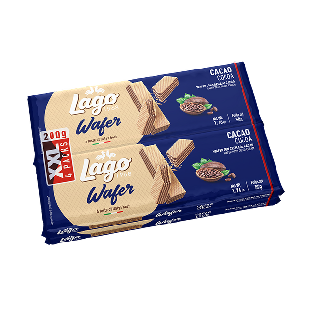 Lago elledi snack, multipack wafer, farciti con crema al cacao, multipacco , 4 unit of 50gr.