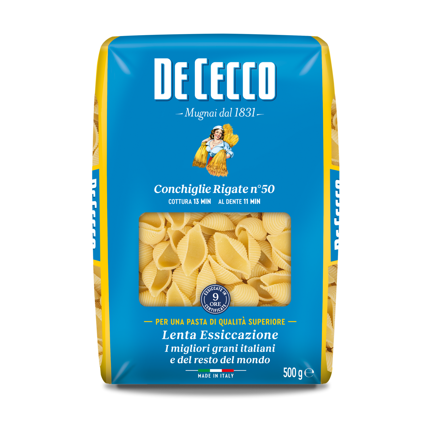 De cecco pasta di semola lenta essiccazione conchiglie rigate n.50 ,500gr.