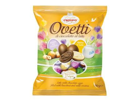 CRISPO PRALINES OVETTI FILLED CREAM MILK & HAZELNUT 130 GR (12 in a box)