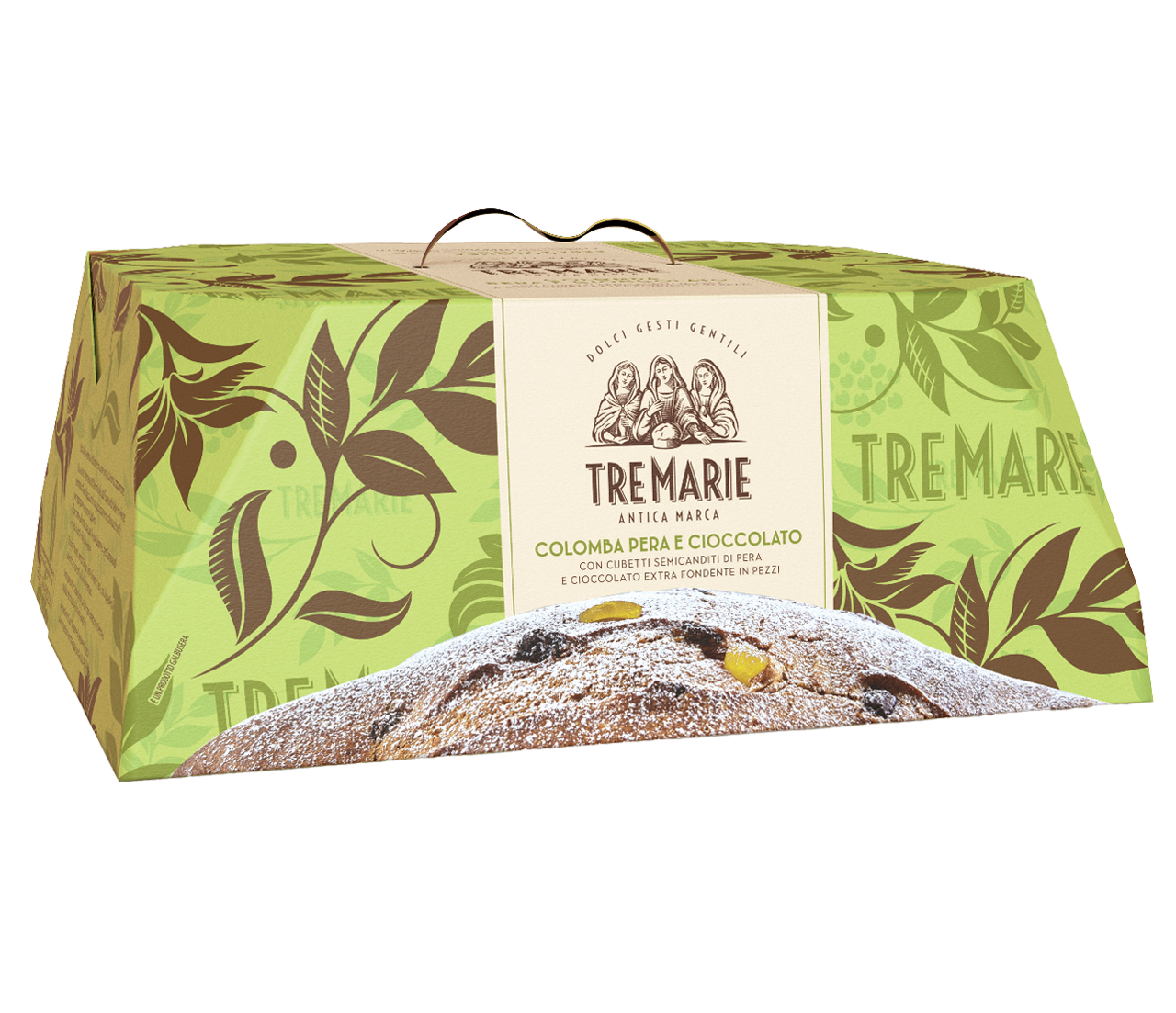 Tre Marie dolce pasquale, la colomba pera e cioccolato, morbida con cubetti di pera candita e pezzi di cioccolato fondente , 1kg.