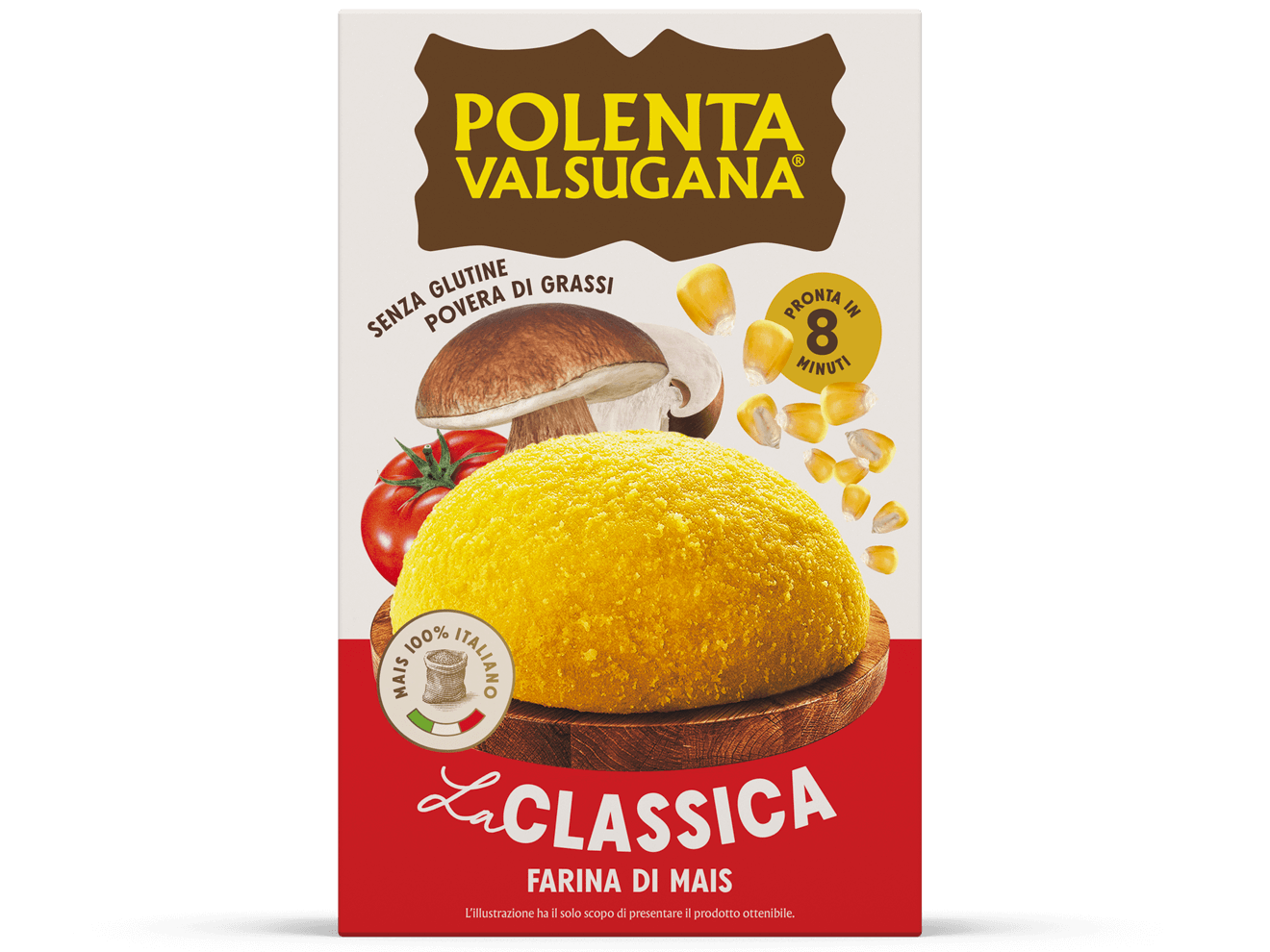 Thanks to the authentic taste of corn is ideal for preparing traditional dishes, its versatility and ease of preparation make it perfect for more refined and imaginative recipes. Soft, sliced or cubed, Polenta Valsugana Classica is always good!