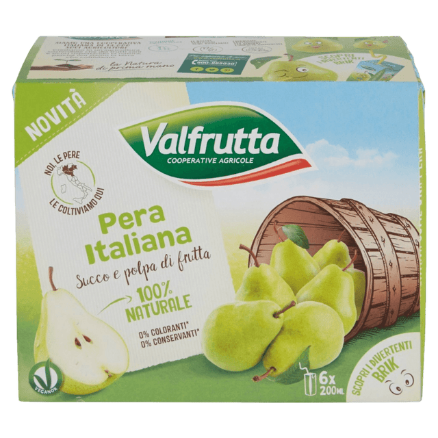 Valfrutta nettare, succo e polpa, succo di frutta alla pera italiana, 6 brick, 20cl.