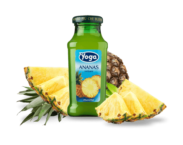 Yoga , succo di frutta, succo di ananas, 24 bottiglie di vetro da 20cl.
