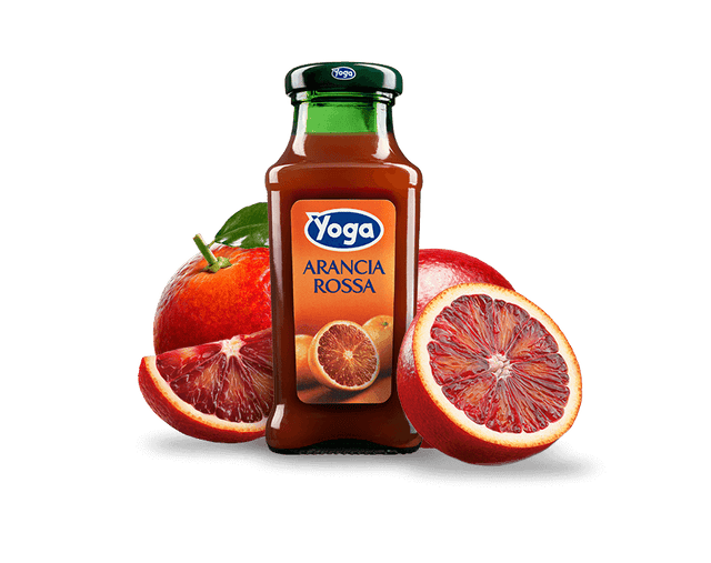 Yoga , succo di frutta, succo di arancia rossa, 24 bottiglie di vetro da 20cl.