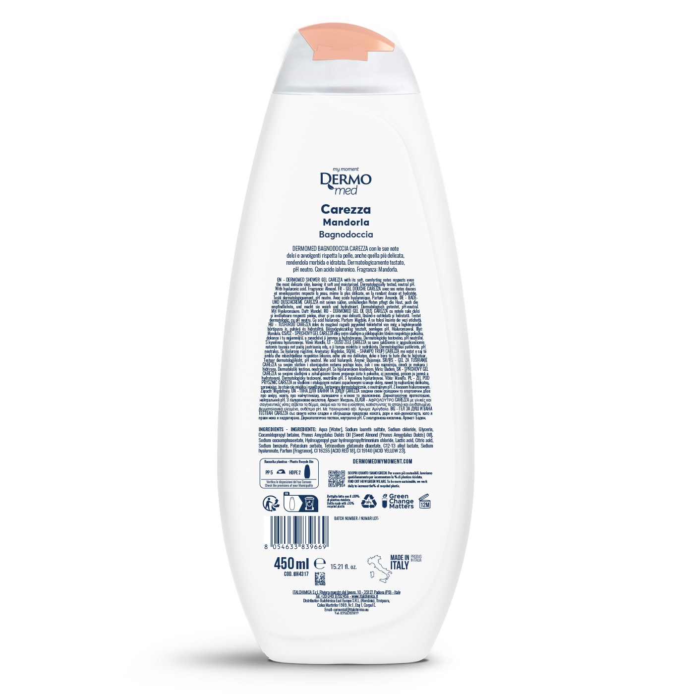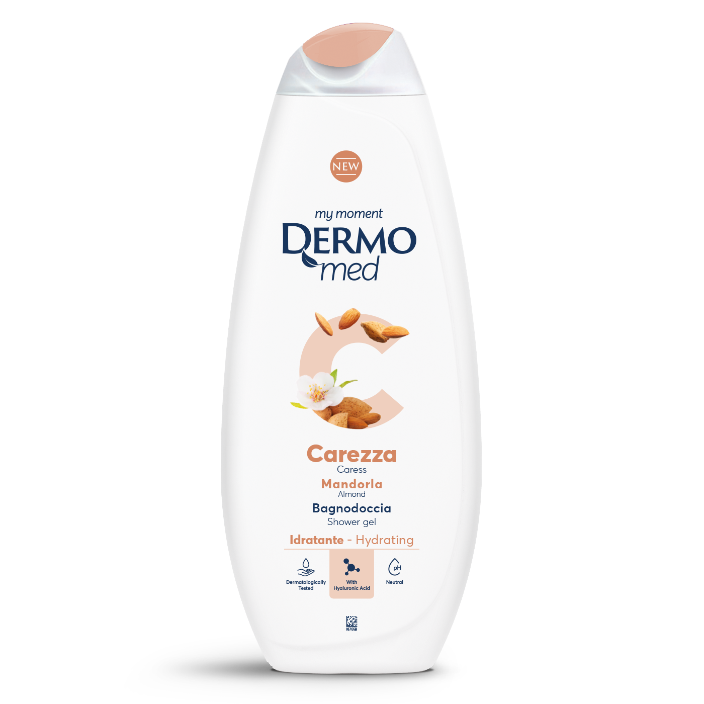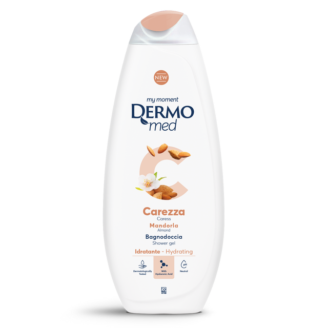 Dermomed Almond Caress Shower Bath contains hyaluronic acid and glycerin with emollient, moisturizing and repairing properties of the skin.
