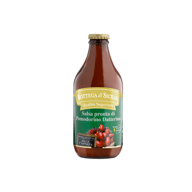 Bottega di sicilia, qualità superiore, salsa pronta, tomato sauce datterini tomatoes bottiglie di vetro, 500gr.