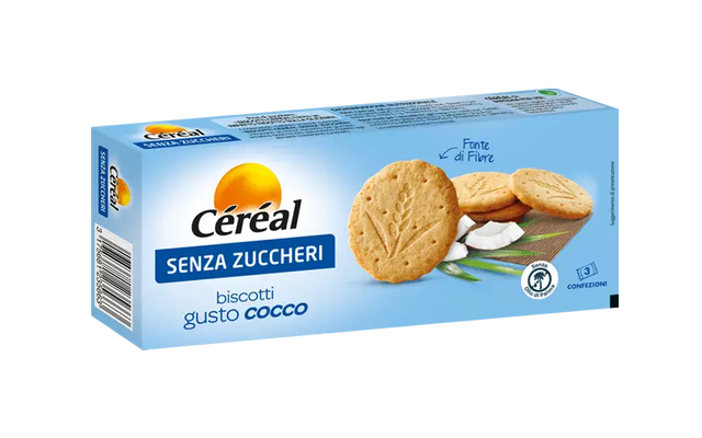 The Biscuits taste Coco Céréal Without Sugars are ideal to eat at any time, for breakfast or snack, thanks to the practical single portions that save freshness to always carry with you. Source of fiber and with the authentic flavor of exclusively natural flavors, Biscuits Céréal Without Sugars, containing maltitol instead of sugar, cause a lower increase in blood glucose after their intake compared to foods containing sugar.