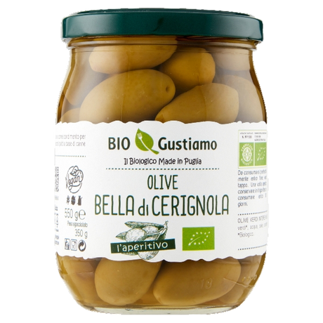 £998Unit price /UnavailableBIO GUSTIAMO OLIVES GREEN BELLA DI CERIGNOLA IN BRINE 550 GR (6 in a box)