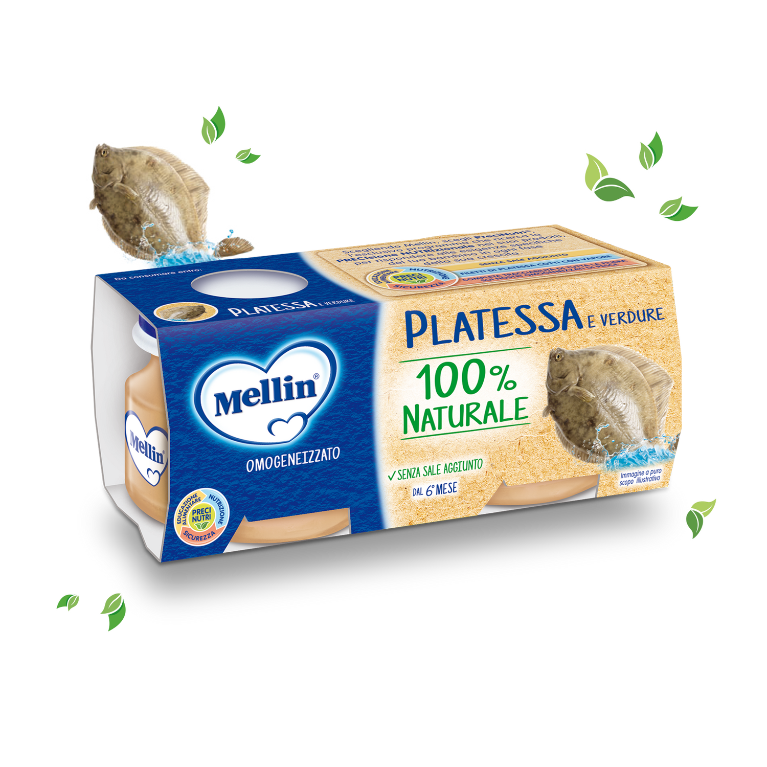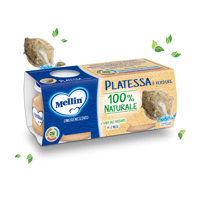 Mellin , dal sesto mese, omogeneizzato pesce, carne di platessa e verdure, 2 unit, 160gr.