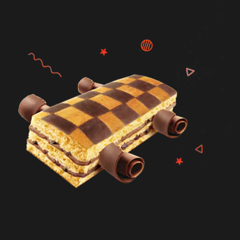 Naturally leavened sponge cake with low-fat cocoa filling and extra chocolate chips.