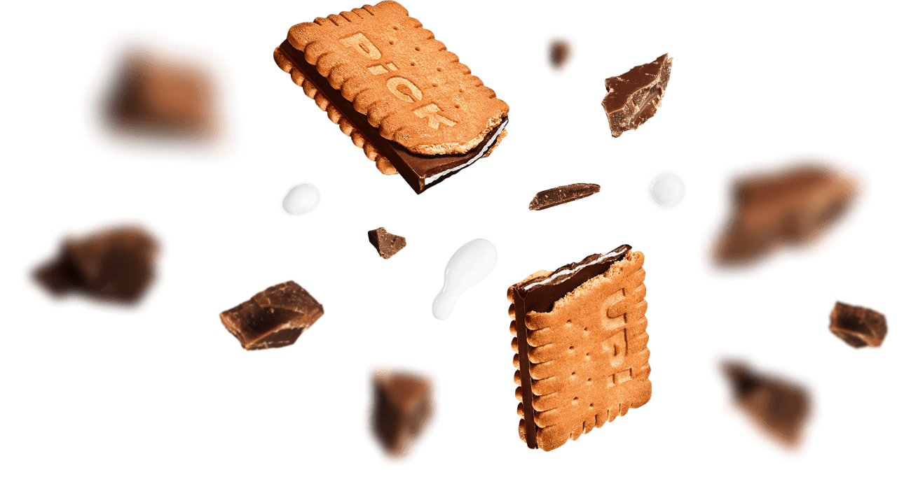 Milk chocolate bar (31 %) with filling (13 %) of milk cream in a double biscuit.