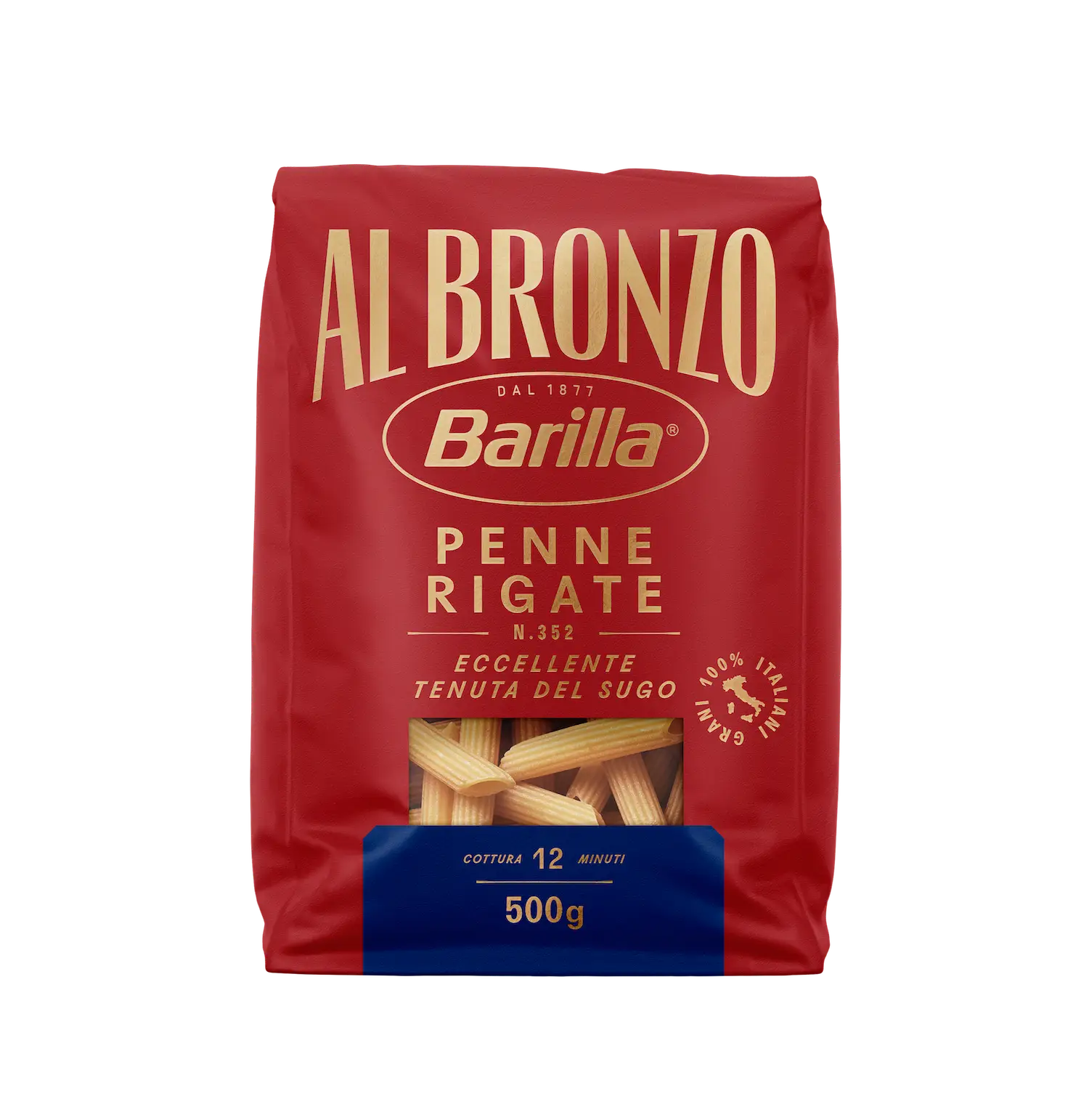 BARILLA PASTA DI SEMOLA AL BRONZO PENNE RIGATE N.352 500 GR (18 in a box)