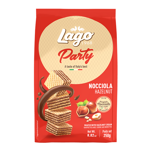 Lago elledì snack, party wafers, al gusto crema alla nocciola, 250gr.