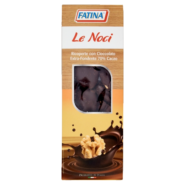 Fatina ,snack frutta secca e cioccolato, le noci sgusciate ricoperte di cioccolato extra fondente 70% cacao , quality dessert, 180gr.