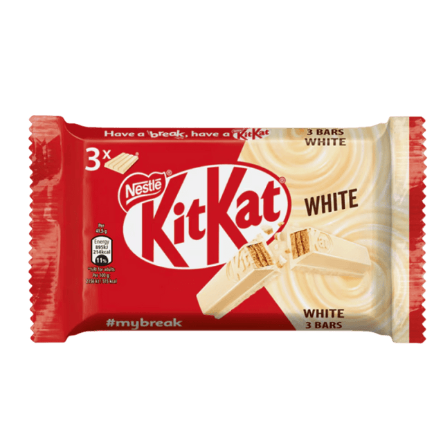 KITKAT in White version. The ideal snack for a light and delicious refill at any time of the day. Simply discard, break and dive into the taste to regain good mood. Available in multipack format of 3 KitKat individually wrapped, each 41.5 g., your KitKat stock to never be short of Break. Have a break, have a KitKat!