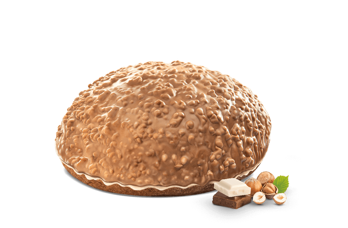 Natural baking confectionery, filled with hazelnut cream, double chocolate coating, with praline hazelnuts.