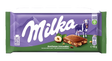 Milka , tavoletta di cioccolato al latte con pezzi di nocciole , 90gr.