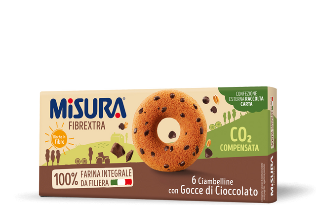 Misura fibre extra colazione, merendine, ciambelline integrali con gocce di cioccolato , whole donut with drops of chocolate , 6 snack 230gr .