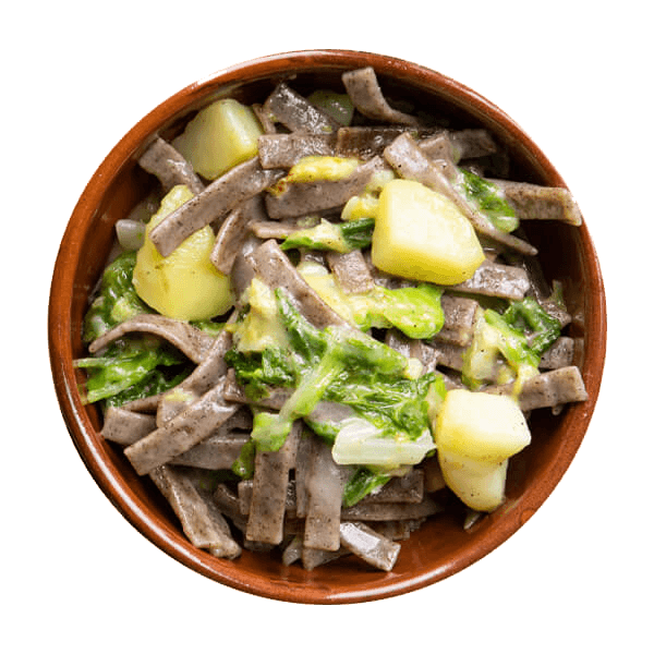 Pizzoccheri dellla Valtellina I.G.P. are produced according to ancient local traditions and made with durum wheat semolina and the best buckwheat flour.