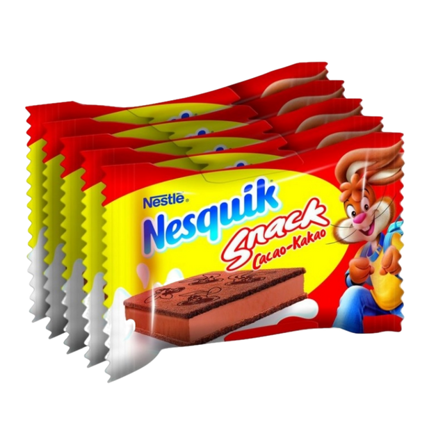 Nesquik Snack is a fresh snack filled with a delicious cocoa cream enclosed between two soft layers of cocoa sponge cake.