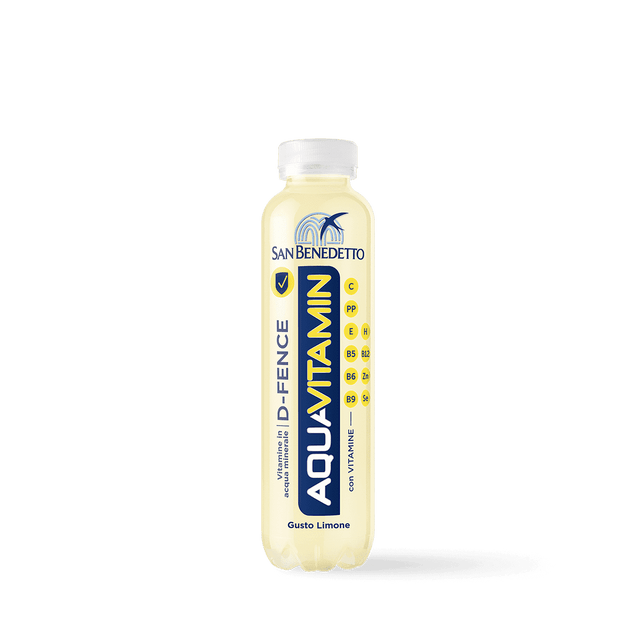 Able to bring vitality and benefits to our body, Aquavitamin is a drink dedicated to all those who live an active life, attentive to their well-being and with a young and dynamic lifestyle. Available in four fresh and refreshing flavors, with four different functional areas, the D-FENCE lemon-flavored version is an aid to keep in shape the natural defenses, with vitamin C, zinc and selenium and vitamins B12, B6 and B9 that contribute to the normal functioning of the immune system and vitamins PP, B5 and H that promote energy metabolism.