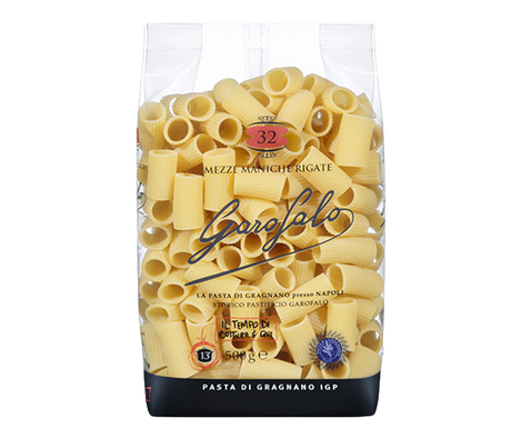 £1898Unit price /UnavailableGAROFALO PASTA DI GRAGNANO IGP MEZZE MANICHE RIGATE N.32 500 GR (16 in a box)