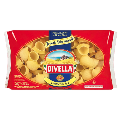 £1871Unit price /UnavailableDIVELLA PASTA DI SEMOLA FORMATI SPECIALI LUMACONI N.49 500 GR (12 in a box)
