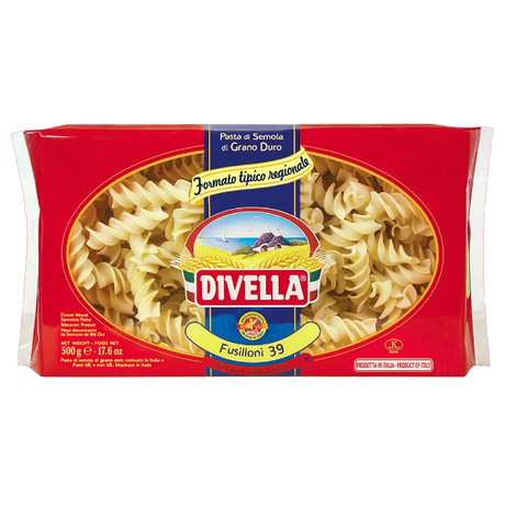 £1871Unit price /UnavailableDIVELLA PASTA DI SEMOLA FORMATI SPECIALI FUSILLONI N.39 500 GR (12 in a box)