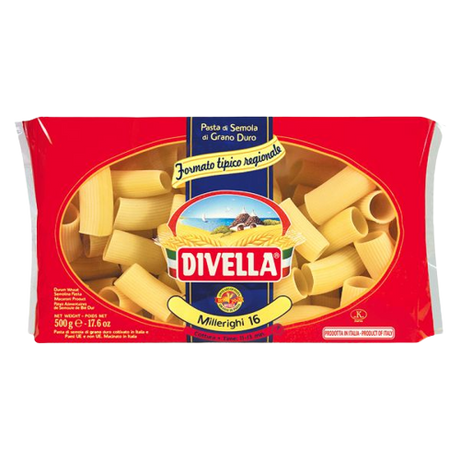 £1871Unit price /UnavailableDIVELLA PASTA DI SEMOLA FORMATI SPECIALI MILLERIGHI N.16 500 GR (12 in a box)