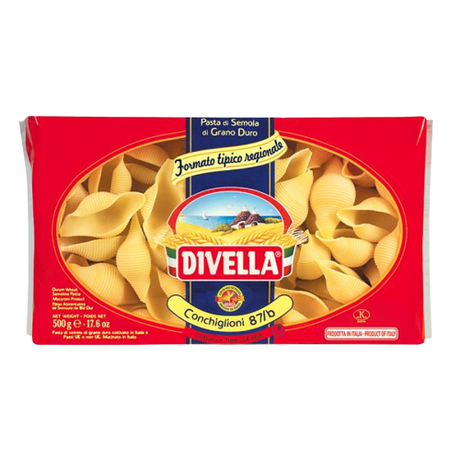 £1871Unit price /UnavailableDIVELLA PASTA DI SEMOLA FORMATI SPECIALI CONCHIGLIONI N.87/B 500 GR (12 in a box)