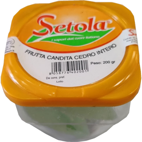 £1335Unit price /UnavailableSETOLA CANDIED FRUITS CRYSTALLIZED FRUIT CEDAR WHOLE 200 GR (12 in a box)