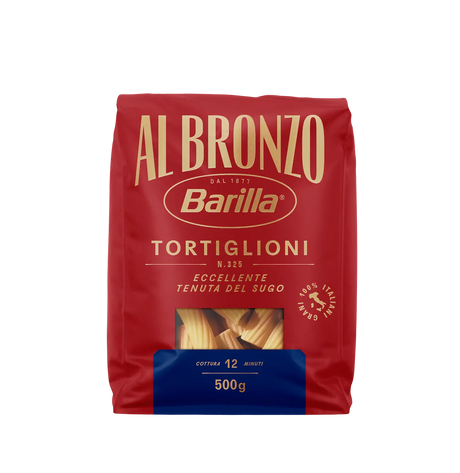 £1051Unit price /UnavailableBARILLA PASTA DI SEMOLA AL BRONZO TORTIGLIONI N.325 500 GR (16 in a box)