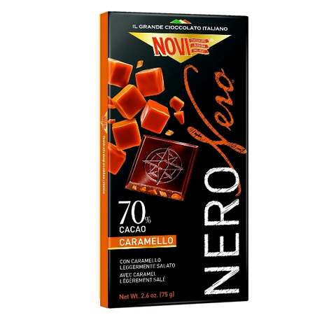 £3721Unit price /UnavailableNOVI NERO NERO CHOCOLATE BAR EXTRA DARK 70% CARAMEL 75 GR (20 in a box)