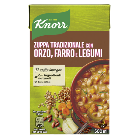 £2804Unit price /UnavailableKNORR SOUP BARLEY SPELT AND LEGUMES BRICK 500 ML (12 in a box)