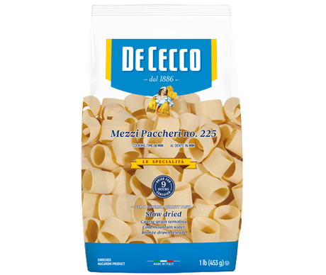 £2301Unit price /UnavailableDE CECCO PASTA DI SEMOLA FORMATI SPECIALI MEZZI PACCHERI LISCI N.225 500 GR (12 in a box)